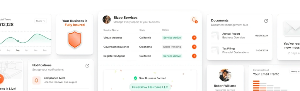 Your filed articles and any additional documents and services are easily accessible from within your custom business dashboard. You’ll get notifications once they’re ready.
