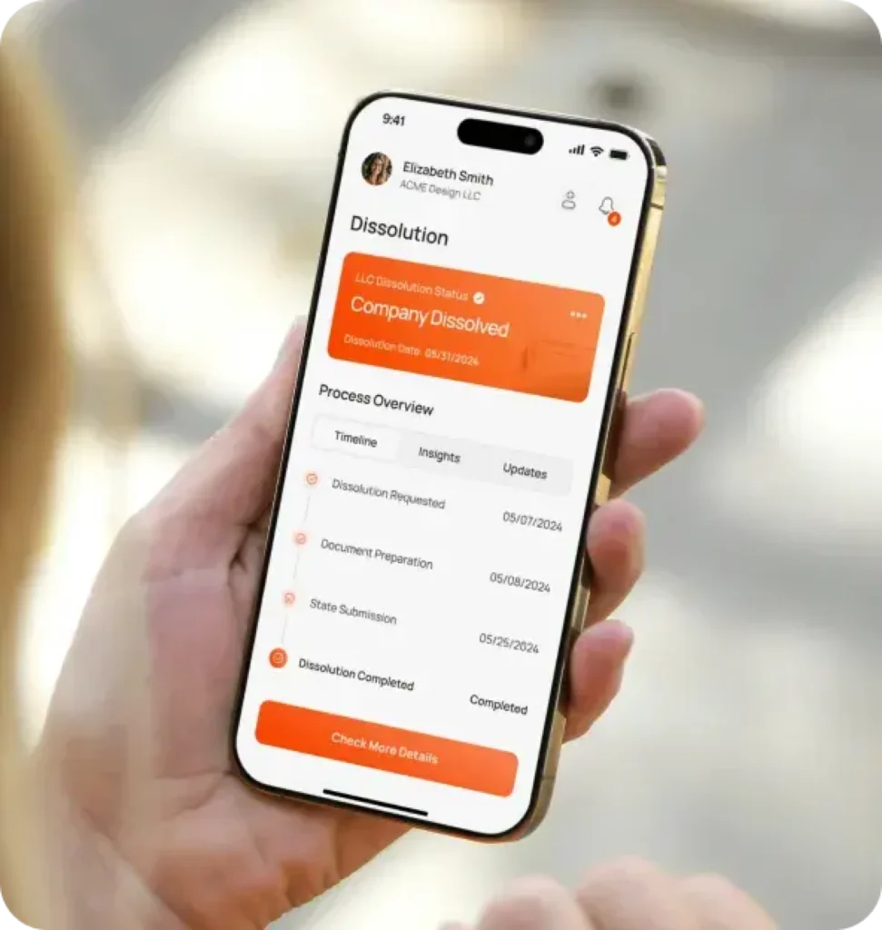 The dissolution process includes first reaching an internal company agreement to pursue dissolution, filing your Articles of Dissolution with the state, and settling all financial obligations and accounting.
